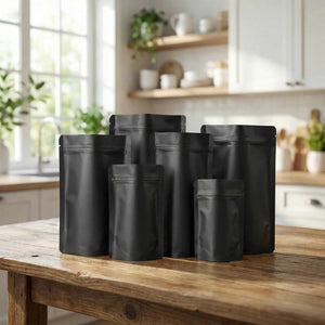 Crna plastična doypack kesa sa zip zatvaračem predstavlja elegantno i praktično rešenje za pakovanje proizvoda. Zahvaljujući stabilnom dnu, kesa može samostalno da stoji na polici, dok zip zatvarač omogućava višekratno otvaranje i zatvaranje uz očuvanje svežine sadržaja.